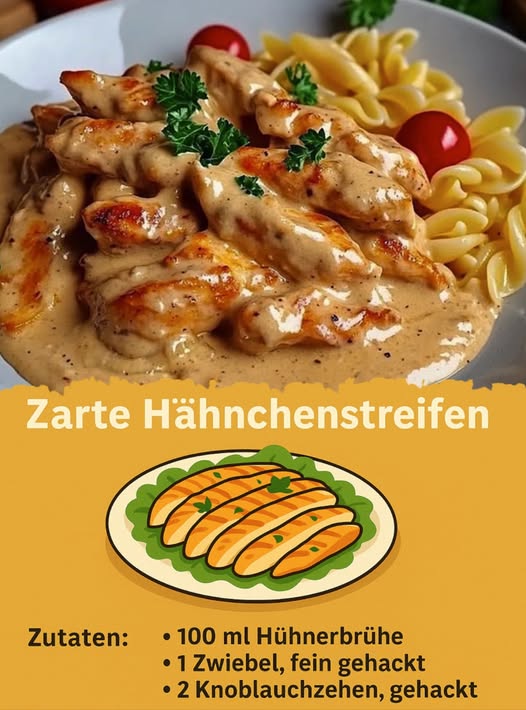Fßr ein himmlisches Geschmackserlebnis sollten Sie dieses Rezept fßr zarte Hähnchenstreifen mit cremigen Nudeln in sahniger Sauce ausprobieren. Dieses einfach zuzubereitende Gericht ist die perfekte Wahl fßr ein Abendessen unter der Woche. Leicht und sättigend zugleich, wird es Sie mit jedem Bissen glßcklich machen.